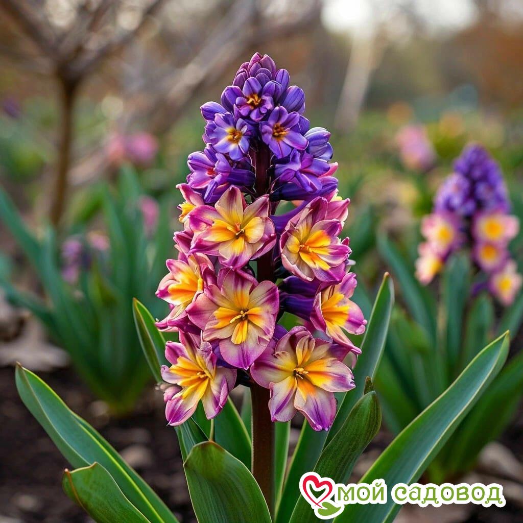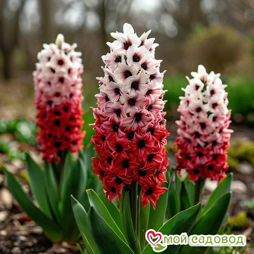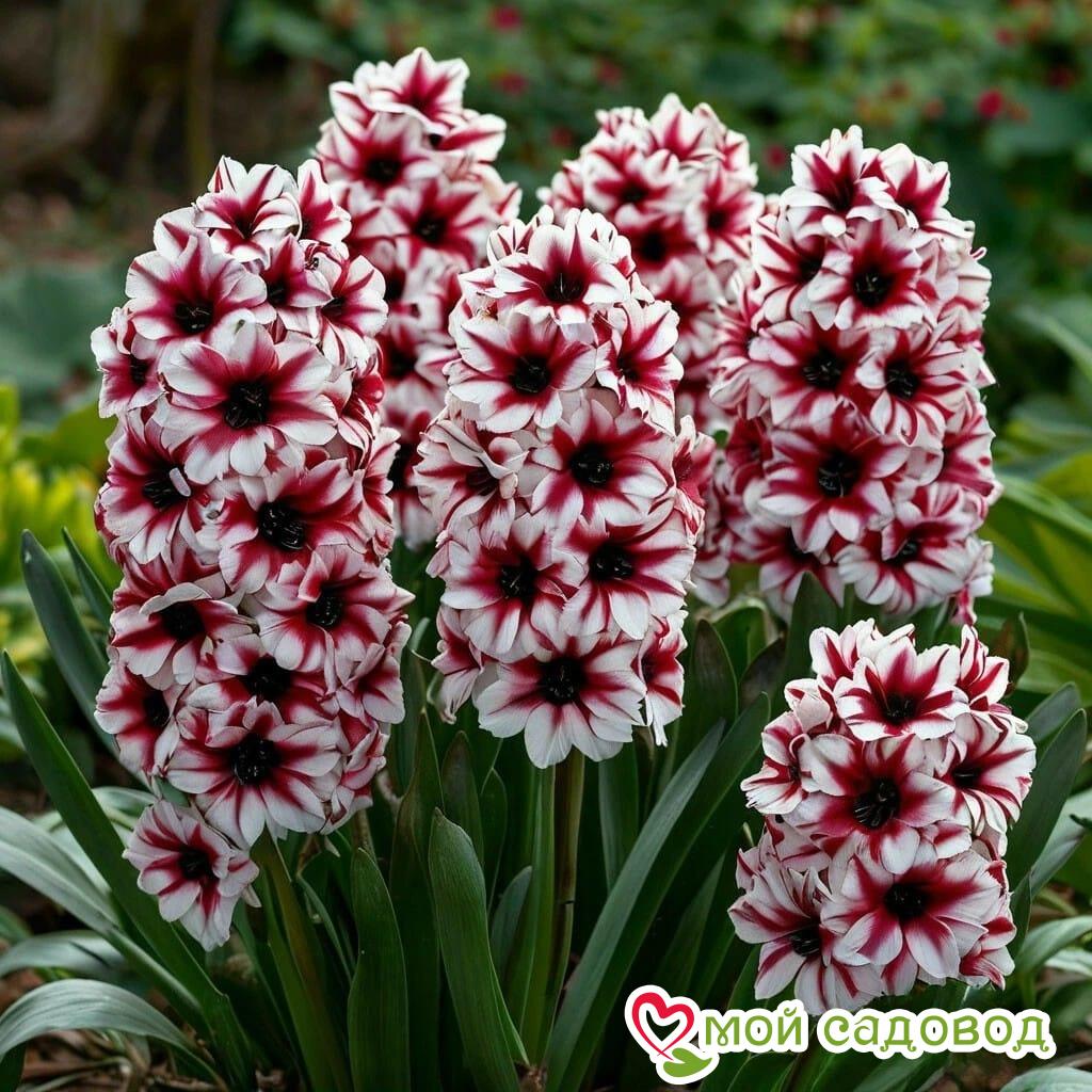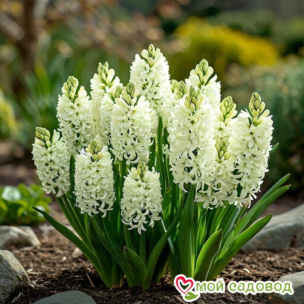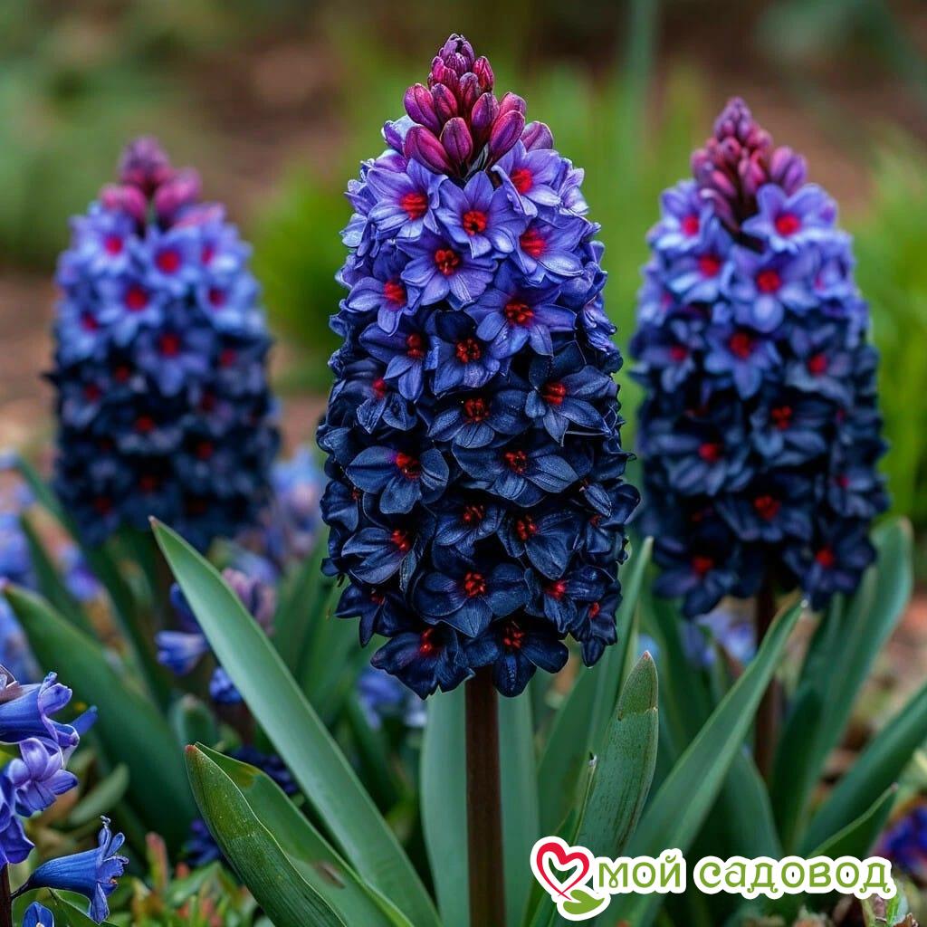 Садовые гиацинты принадлежат к семейству Liliaceae. Родом растение из стран Ближнего Востока и Средиземноморья. В естественной среде они встречаются на каменистых участках и на скалистых склонах. Выращенные из луковиц экземпляры могут достигать 15 – 30 см в высоту. Цветочные стебли образуются мощные и коренастые. Листья блестящие и длинные, размером 20 – 30 см. Они густо размещены в нижней части стебля. Цветки колоколообразной формы.