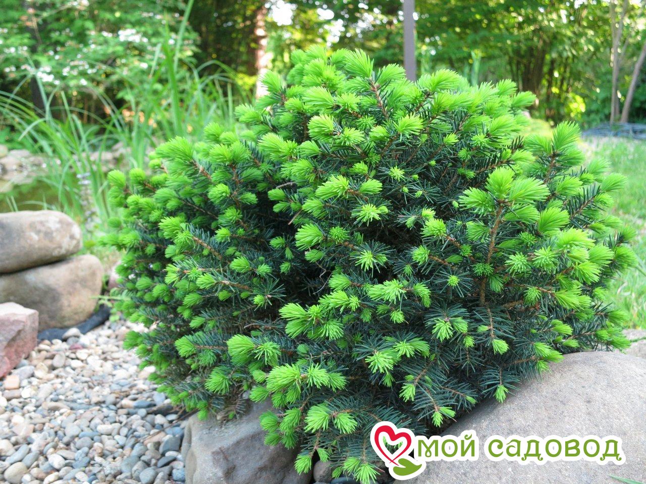 Ель сербская Карел Данный сорт найден в Бельгии в 1991 году. Появился он в результате скрещивания с елью Чёрной. Растение пользуется популярностью у ландшафтных дизайнеров и садоводов-любителей. Его выращивают практически во всей Европе. Ботаническое описание Ель сербская Карел принадлежит к многочисленной группе низкорослых хвойников. Даже в зрелом возрасте её размер не превышает 80 см. В редких случаях многолетник вырастает до 1 м. Ширина кроны у основания равна 1 м. По форме она напоминает зелёный шар или огромного ежа. В первые 5 − 7 лет хвойник похож больше на кадочный, комнатный экземпляр. Годичный прирост саженцев составляет 3 − 5 см. Хвоя короткая, плотная, сплюснутая по бокам (характерная черта сербской ели). Цвет – насыщенно зелёный. Сверху хвоя покрыта восковым налётом, за счёт которого блестит на солнце. Это придаёт кустарнику «светящийся» облик. Из прочих особенностей, свойственных ели сербской Карел, следует отметить, что её короткие ветви вырастают вверх лишь у самой макушки кроны. Чем ближе к грунту, тем они горизонтальнее. Нижние ярусы устремлены своими кончиками в землю. Также у данного сорта очень декоративные плоды – шишки фиолетово-коричневой окраски. Корневая система расположена в поверхностном слое, широко разветвлённая, чувствительная к уплотнению субстрата. Применение Сорт ели сербской Карел очень универсальный в применении. Его широко используют для украшения балконов, террас или лоджий, в качестве кадочной культуры и просто как садовое растение на участке. Шарообразная зелёная крона эффектно дополнит альпийскую горку и маленький сад, выполненный в японском стиле. Это отличный вариант для озеленения косого склона, беседок, групповых насаждений. Саженцы ели сербской Карел хорошо смотрятся с невысокими кустами роз. С их помощью ограждают бассейны и декорируют подпорные стенки. В любое время года хвойники источают приятный, освежающий аромат. Они очищают и обеззараживают городской воздух. Агротехника Высаживать рассаду ели сербской Карел желательно на солнечных, открытых участках. В таких условиях хвойник проявит свои лучшие качества. При этом он полноценно развивается и в полутени. Единственный нюанс – диаметр кроны получится меньше стандартного. Описываемый сорт абсолютно нетребователен к уходу. Этим и объясняется его популярность. Особенно просто подобрать для многолетника почву. Он благополучно развивается на щелочных и слегка подкислённых участках. Единственное, что не переносит хвойник – пересушки и чрезмерного уплотнения земли. В связи с этим приствольную зону рекомендуется рыхлить и каждый год обновлять слой мульчи (компост или торф с последующей заделкой в грунт). При рыхлении не стоит копать глубоко — у ели сербской Карел поверхностная корневая система, которую легко повредить. Хвойник благополучно переносит загазованность воздуха. Однако, если саженцы растут возле оживлённых улиц, их нужно время от времени обмывать водой. Как и любой многолетник, Карел отлично реагирует на внесение минеральных и органических подкормок. Оптимальный вариант — ежегодное применение перепревшего навоза. Удобрение рассыпают в приствольной зоне каждую весну. Полив нужен регулярный. В вечерние часы выполняют дождевание кроны. По необходимости проводят санитарную стрижку, удаляя повреждённые и вы