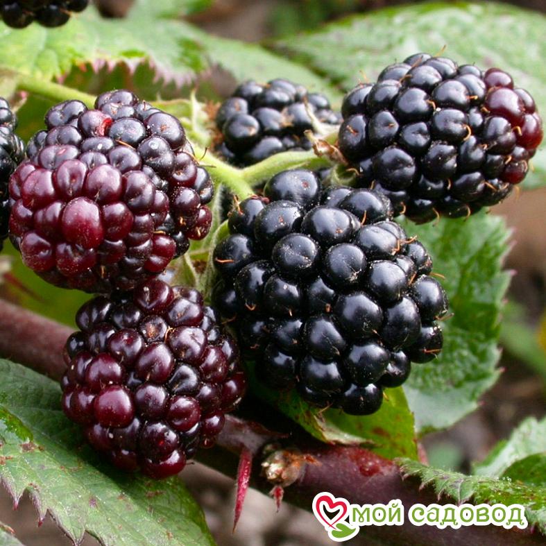 На плодовом побеге может быть 20–30 ягод весом до 7 г каждая. Веток у куста очень много, поэтому с одного растения можно собрать до 20 кг ягод, отличающихся прекрасным вкусом. Ежевика плодоносит с августа по сентябрь, в отличие от малины, ежевика может соседствовать с остальными растениями, не расползаясь на участке.
