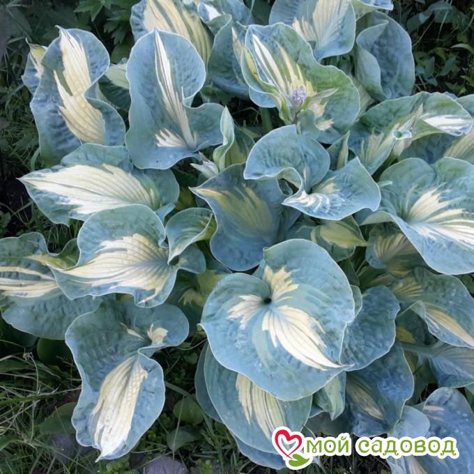 Одна из самых красивых хост с гофрированным краем листа. Обладательница плотных, слегка волнистых сизо-зеленых листьев с кремовой серединой и широкой перистой голубой каймой. Центр весной ярко-золотистый, в середине лета кремовый, затем зеленеет до цвета шартрез. Оригинальности добавляют волнистые, как бы крученые листья. Очень красиво! Лист округлый 23 х 15 см. Диаметр взрослой куртины 60 см.