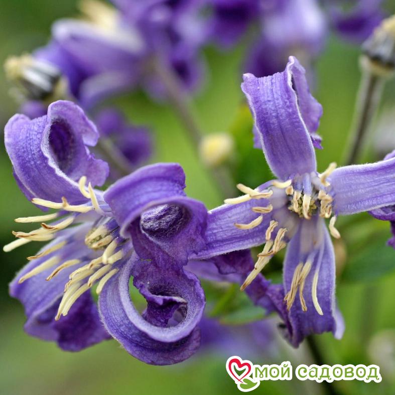 Это кустовая форма клематиса. В высоту растение достигает 1 – 1,2 м, а в диаметре – 60 см. Побеги прямые, прочные, темноокрашенные. Листья выразительные, глубокого зеленого цвета, кожистые. По краям они украшены небольшими зубчиками. Цветы среднего размера. Лепестки насыщенного сине-фиолетового цвета. Цветение приходится на сентябрь-месяц (на побегах текущего года). Растение источает приятный аромат. Осенью формируются пушистые соплодия.