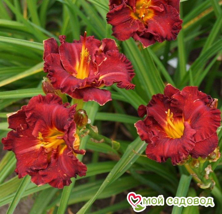 Это популярный сорт, принадлежащий к гибридной группе. Выведен он в Нидерландах. Растение напоминает роскошную королевскую мантию. Такое растение станет ярким акцентом в любом саду. Купить недорого здоровые и крепкие саженцы можно в интернет-магазине «Мой садовод». Как выглядит растение? В высоту взрослый экземпляр достигает 60 – 65 см. Листья длинные, насыщенно-зеленого цвета. Цветки не слишком крупные, диаметром до 12 см. Внимание прохожих они привлекают сочным красным цветом и бархатной текстурой. По краям лепестки сильно гофрированные. Горло насыщенно-желтое. Сорт Литл Ред Вагон отличается ранними сроками цветения. Бутоны распускаются уже в первой половине июня. Если погода стоит благоприятная, возможна вторая волна цветения. Аромат слабый. Применение в ландшафтном дизайне Кустарник изумительно смотрится на берегах водоемах, в альпийских горках среди камней и в бордюрах. Это может быть как сольная, так и групповая посадка. Особенно гармонично многолетник выглядит на фоне стриженого газона. Советы по посадке и выращиванию Для посадки желательно выбирать солнечные места. К почве особых требований нет. Углубляют саженцы максимум на 10 см. Важно проследить, чтобы корневая шейка не опускалась ниже 2 см от поверхности земли. В лунку вносят органику и минеральные удобрения. На завершающем этапе многолетник щедро поливают. Укрытие на зиму не требуется, так как это морозоустойчивый сорт. Водные процедуры проводят довольно редко. Подкормки понадобятся 2 – 3 раза за сезон. Это могут быть калий- и фосфорсодержащие препараты. Положительные качества лилейника Литл Ред Вагон У представленного на фото сорта много хороших качеств: неприхотливость в уходе; высокая болезнеустойчивость; пышное и обильное цветение; приятный аромат; яркий и насыщенный цвет; доступная цена; универсальность в применении; хорошая холодоустойчивость. Купить недорого лилейник можно в интернет-магазине «Мой садовод». Просто отправьте понравившийся сорт в корзину, нажав на соответствующую кнопку. Мы бережно упакуем и максимально быстро доставим Вашу покупку ТК СДЭК или почтой России. Если возникнут вопросы или сложности с оформлением заказа, наши консультанты предоставят квалифицированную помощь. Мы гарантируем высокое качество посадочного материала и дорожим мнением каждого покупателя!