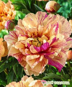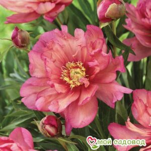 Сорт Монинг Лилак — это гибрид, выведенный самим Тоичи Ито, в честь которого назван целый вид пионов, полученный путём скрещивания древовидного и травянистого пионов. Японский селекционер очень долго выводил этот сорт, в результате получив безукоризненный полумахровый цветок оттенка фуксии с насыщенным вишнёвым центром и золотым пучком тычинок. К концу цветения бутон выгорает в более светлый лавандово-розовый тон. Куст широкий, может цвести в июне-июле до шести недель. Место посадки Для посадки пионов понадобится защищенное от ветров место с хорошей освещенностью. Сорта светлой окраски, а также пионы с простыми и полумахровыми цветками можно посадить на частично затеняемом участке, это продлит цветение и защитит цветы от выгорания. Почва для посадки Залог успешного цветения пиона в будущем — это подготовка почвы! 1. Подготовка ямы — 70*70 см на скудных песчанистых и торфянистых почвах — 50*50 см на плодородных, окультуренных почвах. ХРАНЕНИЕ ДО ПОСАДКИ: После получения посылки, рекомендуем вскрыть пакет и осмотреть корневище. Почки должны быть плотные и розового цвета. Так же уделите внимание самому корневищу, все сомнительные, потемневшие, сморщенные части удалите, а места среза обработайте зеленкой или залой. Если почки еще не тронулись в рост, а высаживать в открытый почву рано, советуем Вам хранить корневище в холодильнике, обязательно оставляя его в пакете с торфяной смесью или в коробке под снегом. Если почки успели раскрыться это не критично, сохранить до посадки их так же возможно, высадите корень пиона в большой просторный горшок или в любую другую ёмкость.
