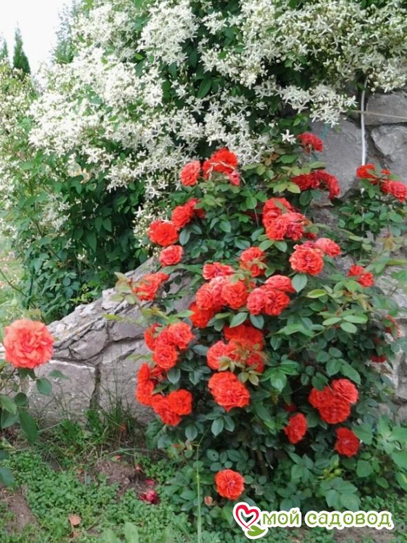 Роза Гримпант Оранж Мейландина плетистая  — обильно и повторно цветущая, очень устойчивая  роза. Цветки небольшие, оранжево-красные, чашевидной формы, состоят в среднем из 40 лепестков и собраны в соцветия по 1-3 шт (цветками диаметром 9 см ). В полном роспуске показывают серединку. Листва темная, куст раскидистый. Может применяться для вертикального озеленения невысоких опор и в качестве почвопокровной розы.       2-летние саженцы ЗКС в мягкой упаковке. Перед упаковкой роз мы проводим обработку корней гидрогелем и пакуем их в обогащенный микроэлементами почвенный субстрат, что обеспечивает жизнеспособность саженцев по пути к вам. До посадки хранить при t 0+2°С. Как хранить растения, если вы получили посылку раньше начала посадочного сезона: Если роза спит — храним в холодильнике или подвале при температуре от 0 до +4 °С, или на улице в коробке под толстым слоем снега. Если роза проснулась — прикопать в теплице или высадить в сад, обеспечив укрытие. Можно посадить розу в горшок и хранить в прохладном подвале или на балконе/лоджии, притеняя от прямых солнечных лучей. Во время хранения периодически проверяйте состояние посадочного материала. Поврежденные, загнившие части корней удалите и обработайте фунгицидом (Топаз, Фитоспорин).