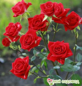 Роза Осирия (Osiria) двухлетняя — восхитительный цветок, основной особенностью которого является оригинальная окраска: внутренние лепестки – бархатные, красного цвета, с нижней стороны переходят в кремово-белый оттенок. Густомахровые бутоны, диаметром до 11 см, источают пьянящий сильный аромат. Радует цветением с середины июня до поздней осени.