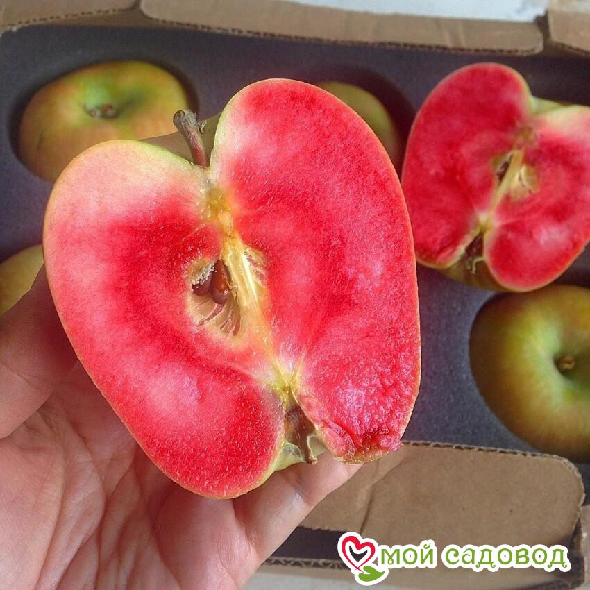 Мякоть насыщенно-розового цвета, очень сочная, хрустящая, очень ароматная, отличного сбалансированного кисло-сладкого вкуса, с небольшой изысканной терпкостью в первое время после сбора урожая, которая потом пропадает. Вкусовые качества отличные, становятся более высокими после некоторого периода улеживания и набирают большую сладость и аромат.